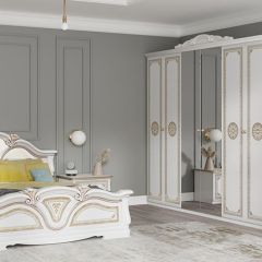 Спальня Грация (комплект 4 дв.) белый/золото вы можете купить в интернет-магазине Larana.market по цене 156 710 руб. Только качественная мебель от Российских брендов. Если у вас возникли вопросы или вам нужна консультация по наличию, срокам доставки, ценам, обращайтесь любым удобным способом.
