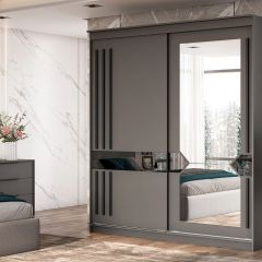 Шкаф-купе №25 Блэк ЛАЙТ (2000) Графит серый/Лакобель/Черный матовый